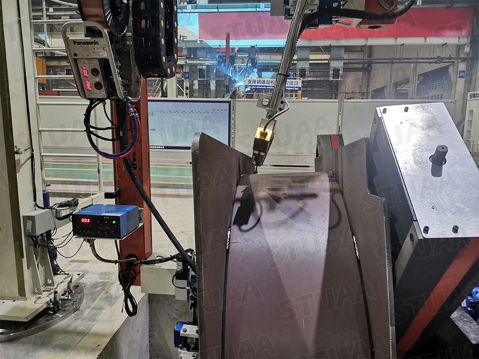 Specialized welding machine for tower crane upper and lower support box ring plate.